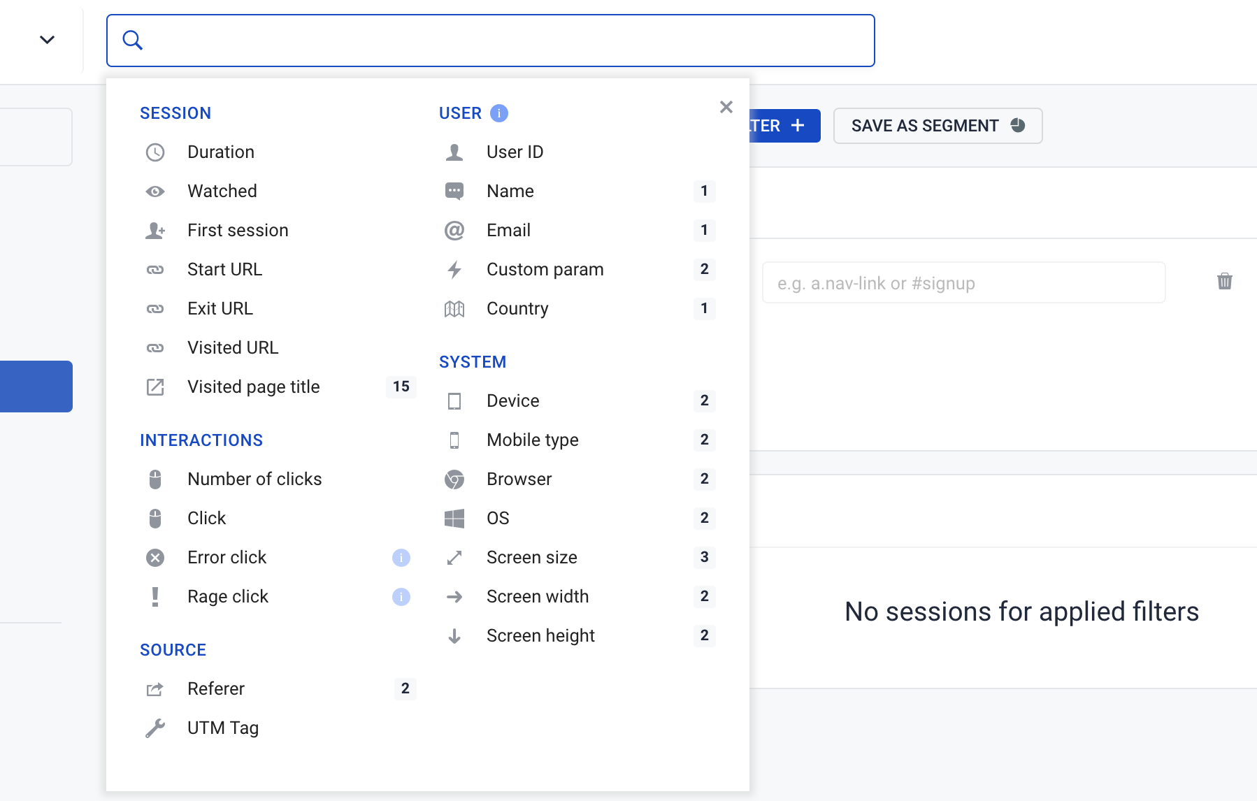 The filters' list is now displayed above the sessions list. It's easier to change it directly from the same view.