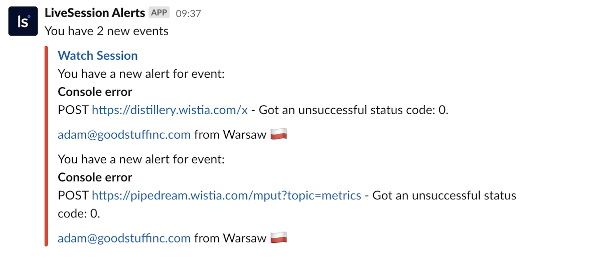 Good news! Rage Clicks, Error Clicks, Console Errors, and Network Errors are now supported in Alerts notifications. You can get instant Slack notifications about errors that occurred in your app