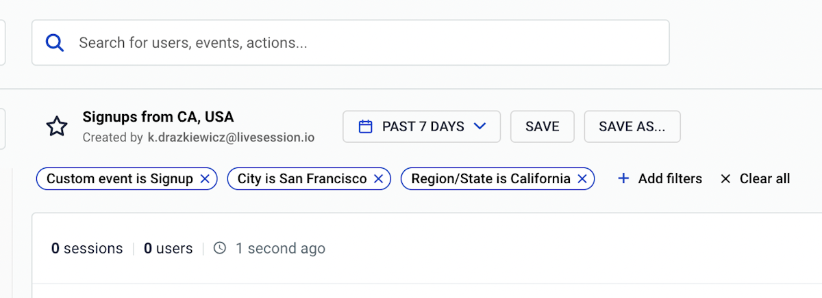 Now, you can edit your segments directly from the Sessions view. Simply make your changes to the filters, and click "save" or "save as...".